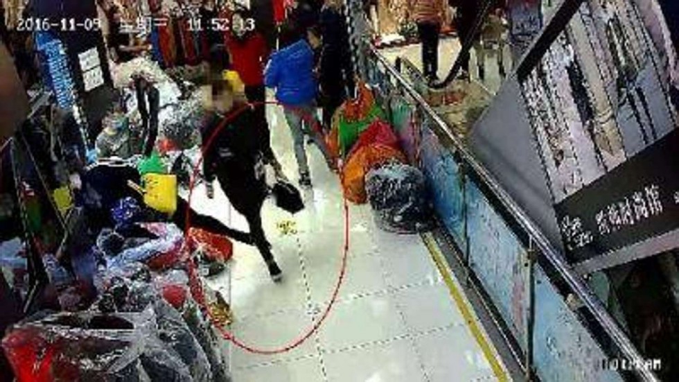 Theo tờ Thông tin Buôn bán Trùng Khánh, người thiếu phụ trung tuổi thử một chiếc áo khoác màu đen, một áo phông đen và một chiếc quần jean. Sau đó, người này để lại quần áo ở phòng thay đồ và bỏ đồng hành thiết bị trộm được.